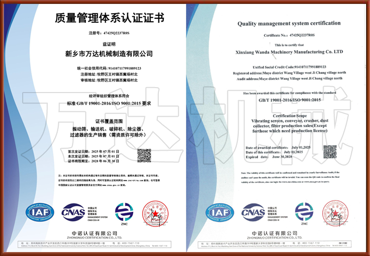 - 萬達機械·資質榮譽WANDA MACHINERY